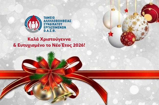 Αγαπητοί συνάδελφοι -ισσες Με την ευκαιρία των εορτών των Χριστουγέννων και της έλευσης του Νέου Έτους, το Ταμείο Αλληλοβοήθειας του Συνδικάτου Εργαζομένων ΟΑΣΘ εκφράζει τις θερμότερες ευχές του προς όλα τα μέλη. Ευχόμαστε: Ένα εορταστικό διάστημα γεμάτο υγεία, ευημερία και χαρά. Ένα Νέο Έτος γεμάτο επιτυχίες, προσωπική και επαγγελματική εξέλιξη. Την διατήρηση και ενίσχυση του…